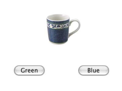 The mug – which is blue or green – is always in the middle. But the position of the handle does the same job as the colour earlier on: It primes you to move faster to hit the button. In this case, it’s faster to move left.