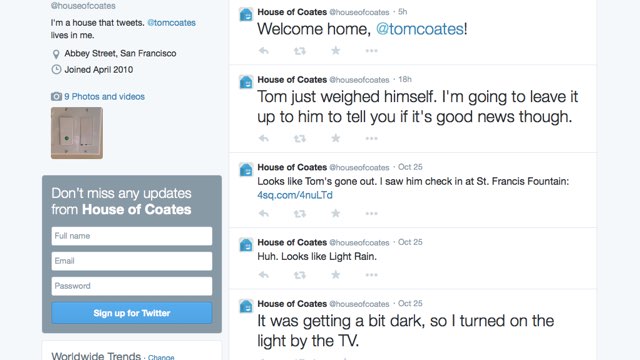 Here's @houseofcoates, Tom Coates' house that talks on Twitter.